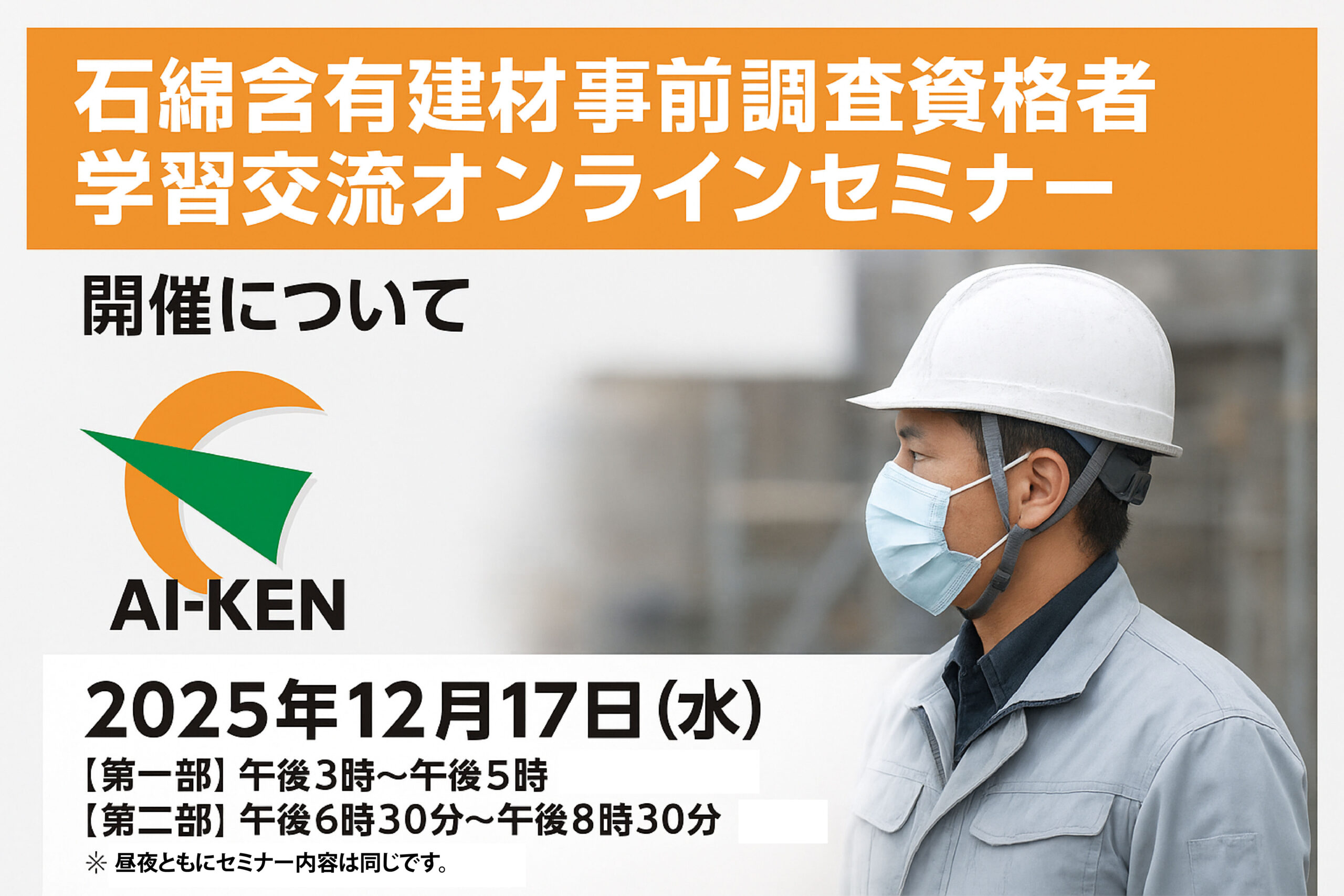 この間、全建総連では日本環境衛生センターと連携し、講習会やオンラインセミナーなどを通じて、調査実務に関する知識の向上を進めてきました。